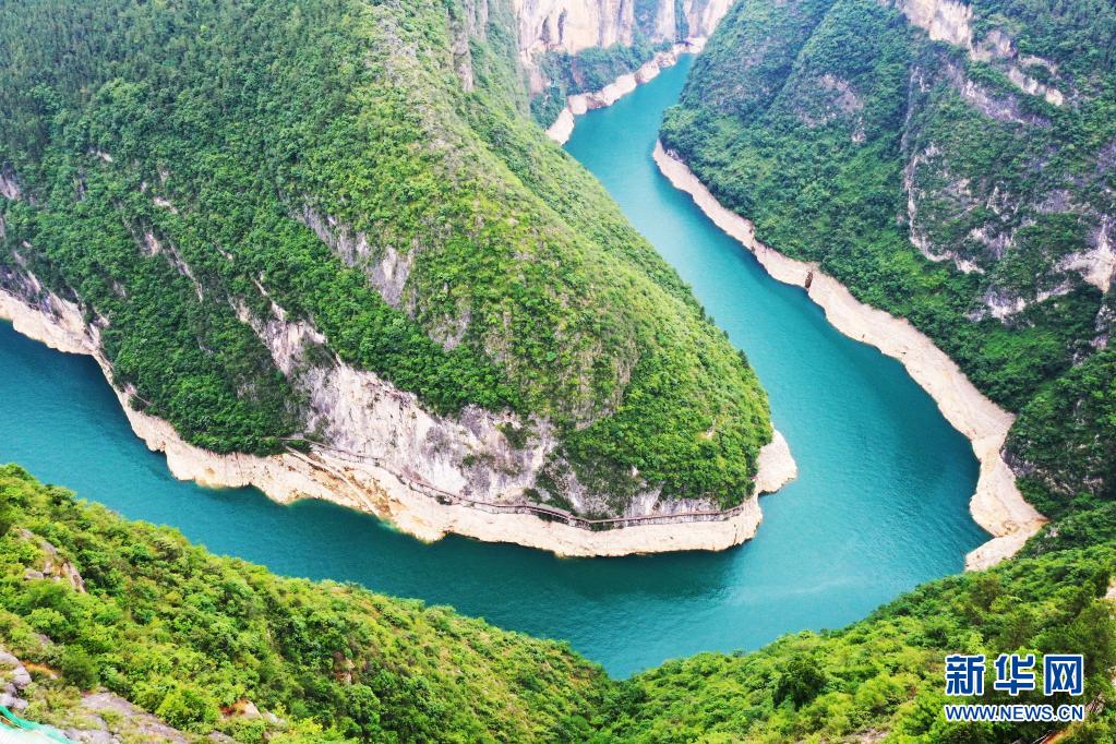 重慶市巫山縣魚頭灣景象(2020年5月26日攝,無人機照片)。長江經(jīng)濟帶沿江11省市大力推進生態(tài)環(huán)境整治,“共抓大保護、不搞大開發(fā)”,共同舞動高質(zhì)量發(fā)展的“綠色長龍”。新華社記者 王全超 攝