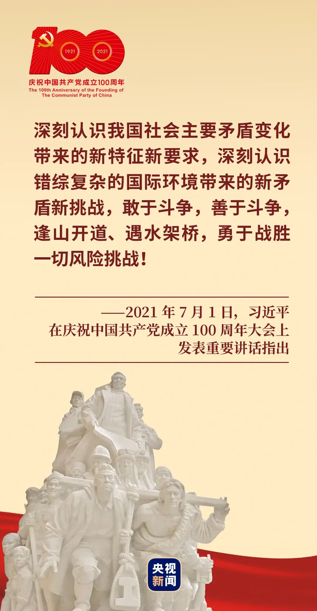 “一百年來,中國共產(chǎn)黨團結(jié)帶領(lǐng)中國人民進行的一切奮斗、一切犧牲、一切創(chuàng)造,歸結(jié)起來就是一個主題:實現(xiàn)中華民族偉大復(fù)興。”2021年7月1日,在慶祝中國共產(chǎn)黨成立100周年大會上,習(xí)近平總書記的話語擲地有聲。