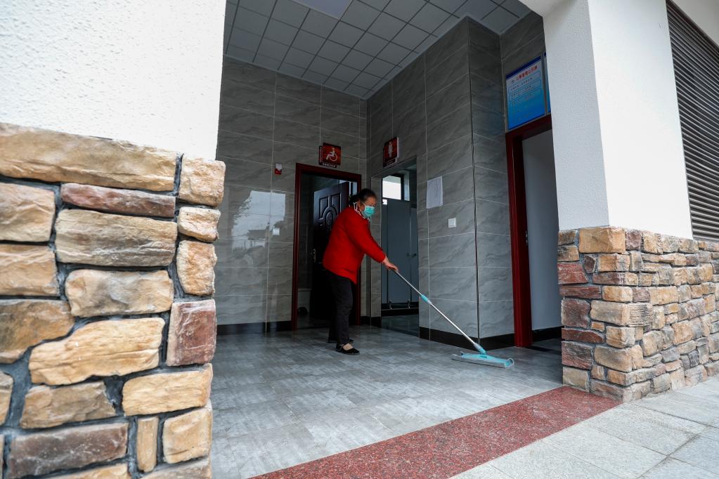 2020年4月8日,重慶市沙坪壩區(qū)中梁鎮(zhèn)龍泉村村民吳桂慧在打掃村里的公廁。 新華社發(fā)(黃偉 攝)