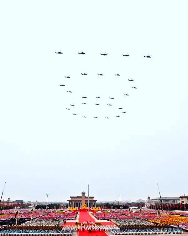 這天清晨,15架殲-20戰(zhàn)機(jī)分3個梯隊,呼嘯飛過天安門。29架新型武裝直升機(jī)組成的“100”字樣,引起人們忘情的歡呼、無限的暢想。
