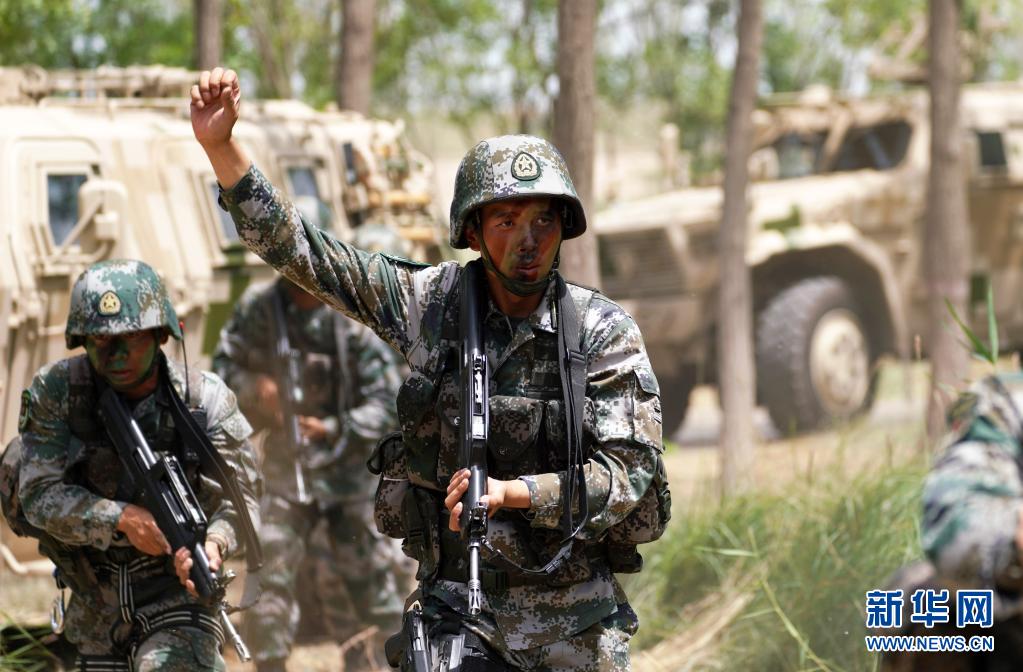 陸軍第76集團(tuán)軍某特戰(zhàn)旅特戰(zhàn)營營長劉近帶領(lǐng)特戰(zhàn)小隊(duì)進(jìn)行突擊清剿行動(dòng)(7月14日攝)。新華社記者張永進(jìn)攝