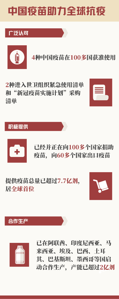 推動(dòng)全球抗疫,特別是幫助廣大發(fā)展中國家獲取疫苗、應(yīng)對疫情,中國的貢獻(xiàn)有目共睹,國際機(jī)構(gòu)和發(fā)展中國家代表予以高度評價(jià)——