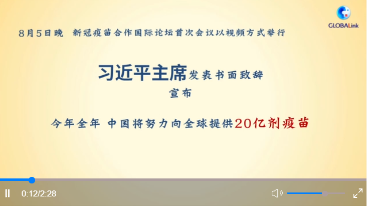 新冠疫苗合作國際論壇首次會(huì)議5日晚以視頻方式舉行。習(xí)近平主席向會(huì)議發(fā)表書面致辭。