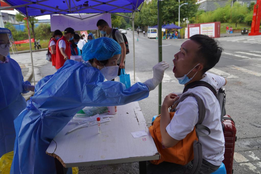 8月24日,貴州醫(yī)科大學(xué)新生報(bào)到注冊(cè)時(shí)接受核酸檢測(cè)。新華社發(fā)(李菡逸 攝)