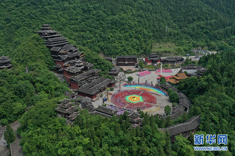 圖為5月18日,在彭水自治縣蚩尤九黎城景區(qū)舉行的“同唱嬌阿依 共舞踩花山”活動現場。每年在彭水舉行的踩花山節(jié)活動中,苗鄉(xiāng)兒女都會身著節(jié)日盛裝,同唱一曲《嬌阿依》。新華網發(fā)(趙勇 攝)