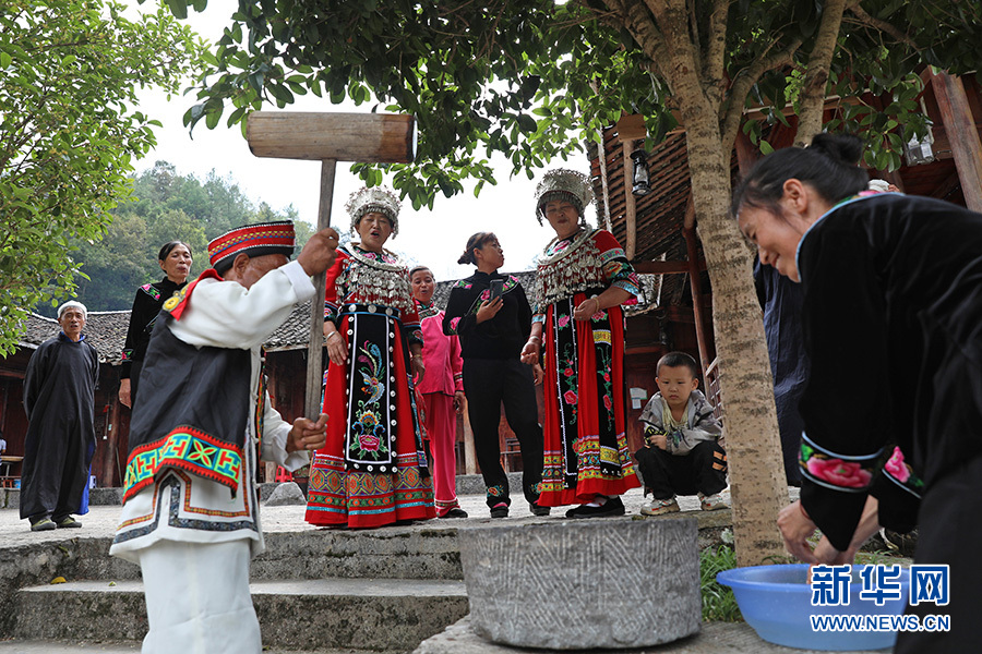 在彭水自治縣鞍子鎮(zhèn)羅家坨苗寨,當地村民正在即興演唱“打糍粑”的苗族民歌。動聽的歌聲傳遍山野,表達著實現全面小康后當地苗鄉(xiāng)兒女對幸福生活的贊美。新華網發(fā)(趙勇 攝)