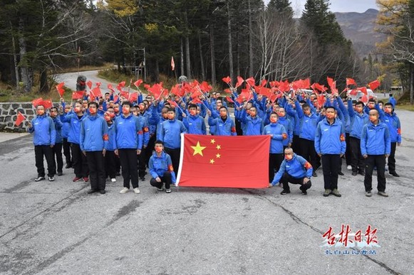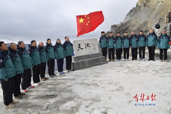 正在天池主峰崗位上默默工作的全國勞動模范吳金明,也在東北最高峰為祖國母親送上節(jié)日的祝福。他動情地說:“今天是新中國72周年華誕,我祝福偉大祖國經(jīng)濟更繁榮、人民更幸福、國力更富強。”