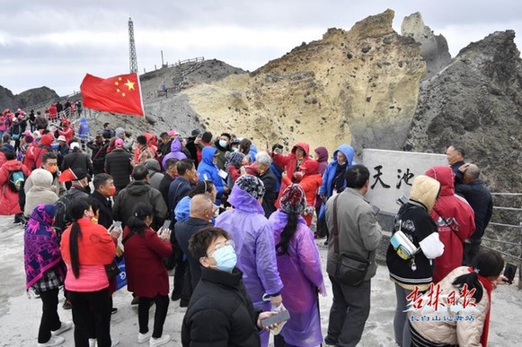 7時50分,記者來到天池主峰,在此堅守的26名景區(qū)員工在一池碧水的天池觀景臺,異口同聲地為祖國送上生日的祝福“祝福祖國之樹萬古長青,祖國之花永不凋謝,祖國之水萬古流長,祖國繁榮昌盛!”隨后,峰巒疊嶂的天池主峰迎來國慶假期第一批廣東客人,他們興奮地與天池合影留念,將長白山美景通過視頻和照片分享給遠方的朋友。面對神秘的天池發(fā)出陣陣感慨“哇,我好幸運,看到天池啦!”“天池真美,不虛此行!”“空氣真清新,有幸福的味道......”一句句真情流露,詮釋著游客們此時此刻的心情。