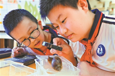 濱江東路小學(xué)學(xué)生在海珠濕地上勞動(dòng)教育實(shí)驗(yàn)課《常見(jiàn)的螺》。 廣州日?qǐng)?bào)全媒體記者駱昌威攝