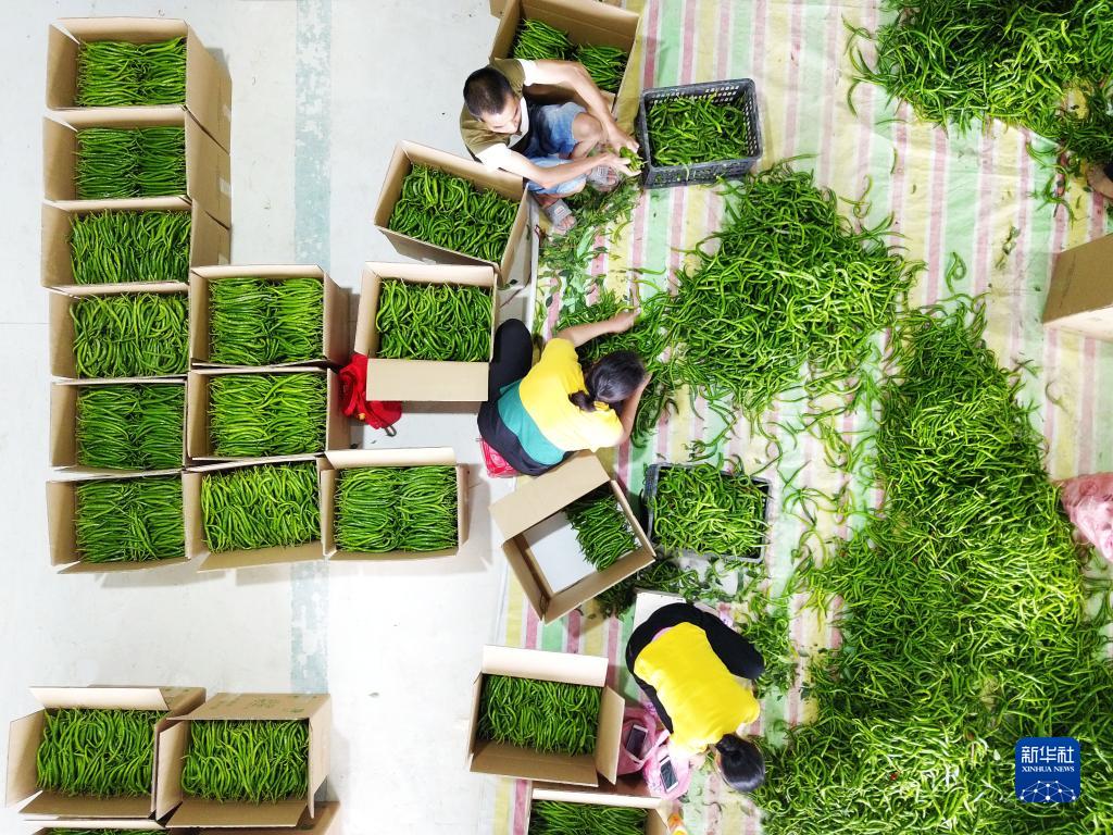 村民在貴陽(yáng)農(nóng)投集團(tuán)龍崗蔬菜基地將采收好的柿子椒裝箱(7月28日攝)。新華社記者 陶亮 攝