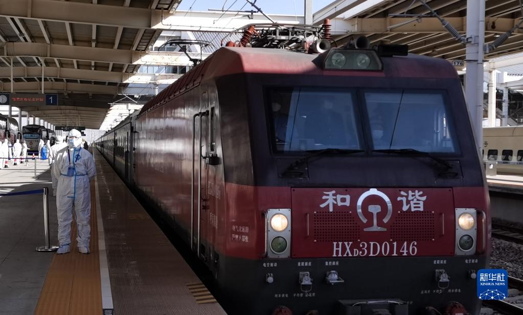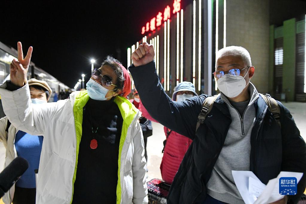 10月30日,載有額濟納旗滯留游客的列車,抵達鄂爾多斯火車站。新華社發(fā)
