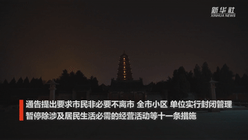 通告提出要求市民非必要不離市,全市小區(qū)、單位實(shí)行封閉管理,暫停除涉及居民生活必需的經(jīng)營(yíng)活動(dòng)等十一條措施。該通告自23日0時(shí)起執(zhí)行,停止執(zhí)行時(shí)間將另行通知。