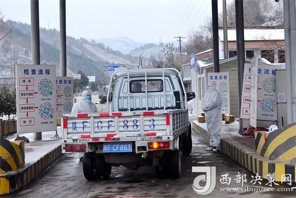 12月26日,寧強縣漢源街道辦工作人員正在黃壩驛檢測點查驗車輛和人員