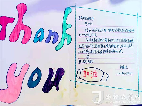 三九嚴(yán)冬,雪花紛飛,寒風(fēng)刺骨。12月24日,一大早,我和隊(duì)員們?cè)缭绲街付ǖ攸c(diǎn)集合,等待分配任務(wù)??吹阶o(hù)理姐妹們個(gè)個(gè)兒都精神飽滿(mǎn)、整裝待發(fā),我的心情是又緊張又激動(dòng)。當(dāng)我們到達(dá)任務(wù)采集地點(diǎn)時(shí),社區(qū)工作人員和志愿者同志為我們搭建了一個(gè)簡(jiǎn)易帳篷。帳篷四翼隨風(fēng)飄揚(yáng),凜冽的寒風(fēng)襲進(jìn)帳篷,如同置身風(fēng)口一樣。一切準(zhǔn)備就緒,換上防護(hù)用品,立即開(kāi)展工作。室外溫度達(dá)零下五度,我們認(rèn)真地為每位居民采集核酸。采集完核酸后,做到一人一消,隊(duì)員的手都凍得通紅麻木,已經(jīng)感覺(jué)不到疼痛,面屏上都已經(jīng)霧氣籠罩,但是,隊(duì)員們沒(méi)有一個(gè)人喊累、沒(méi)有一個(gè)人退縮,更沒(méi)有一個(gè)人喊停。這時(shí),耳畔傳來(lái)一聲,“孩子,辛苦了,這是我給你們送的熱水,” “我家有熱寶,給你們?nèi)∪∨?rdquo;“姐姐,謝謝你們,”說(shuō)著,一個(gè)小女孩走過(guò)來(lái),送來(lái)兩張自己做的小賀卡,上面寫(xiě)的都是感謝的話(huà)語(yǔ)。