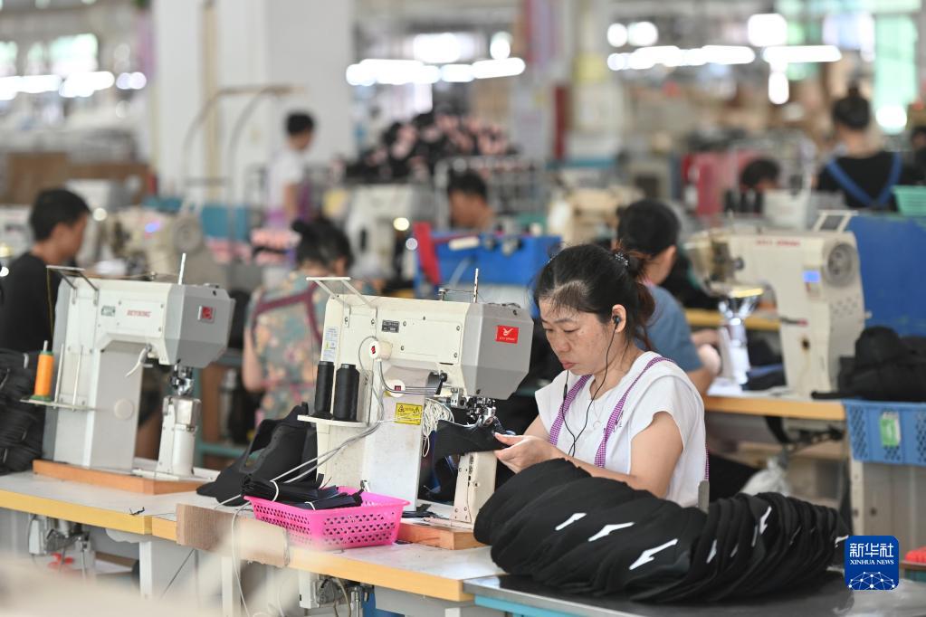 在位于福建省泉州市的鴻星爾克集團(tuán)鴻榮輕工公司車(chē)間,工人在制鞋生產(chǎn)線上操作縫紉機(jī)(7月30日攝)。當(dāng)?shù)囟悇?wù)部門(mén)近年來(lái)積極落實(shí)減稅降費(fèi),出臺(tái)一系列穩(wěn)定工業(yè)、扶持外貿(mào)、鼓勵(lì)企業(yè)研發(fā)創(chuàng)新的政策,服務(wù)實(shí)體經(jīng)濟(jì)發(fā)展。新華社記者 宋為偉 攝