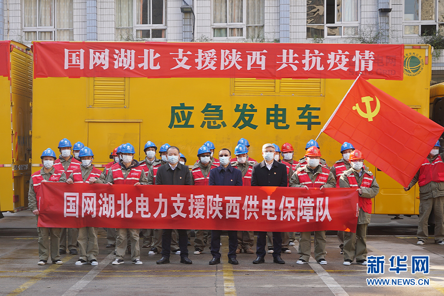 圖為國網(wǎng)湖北電力支援陜西抗擊疫情保供電隊伍出發(fā)前合影。新華網(wǎng)發(fā)