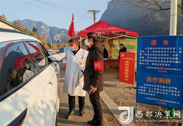 巴山鎮(zhèn)防疫人員在交通健康服務(wù)點(diǎn)查驗(yàn)過(guò)往車輛及人員