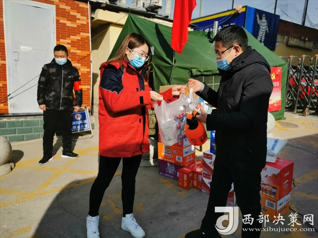 西部決策網訊(薛寶貴 通訊員 高源滋)點滴真情,彰顯大愛。1月3日,延安市巾幗建功標兵、志丹采油廠機修車間職工、巾幗志愿者張陽同志來到延安市志丹縣紫程佳苑B座小區(qū)看望慰問奮戰(zhàn)在一線的防疫人員,為他們送上消毒液、口罩、手套等防疫物資和棉大衣、方便面、奶茶飲品等慰問品,并向元旦期間仍然堅守在防控一線的值勤人員致以崇高的敬意和誠摯的問候。