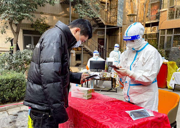 西安爆發(fā)本輪疫情,母親又一次主動站了出來,她說:“我是一名老共產(chǎn)黨員,現(xiàn)在國家需要我,我義不容辭,能為國家做貢獻,我感覺到非常開心!”從2021年12月19日起,陳晶晶和妻子在母親的感召下參與了社區(qū)志愿工作,服務(wù)于每輪核酸檢測現(xiàn)場。陳晶晶說:“我們每天忙碌著,看著這個城市一天天好起來,心里踏實。”