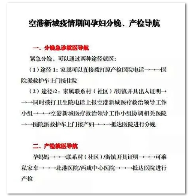 為了便于孕媽媽們更系統(tǒng)的了解就診流程,胡偉超還會(huì)同北杜衛(wèi)生院吳新雷,醫(yī)療救治工作領(lǐng)導(dǎo)小組張亮、呂琳連夜制作了《空港新城疫情期間孕婦分娩、產(chǎn)檢導(dǎo)航》,詳細(xì)介紹各類情況的流程。