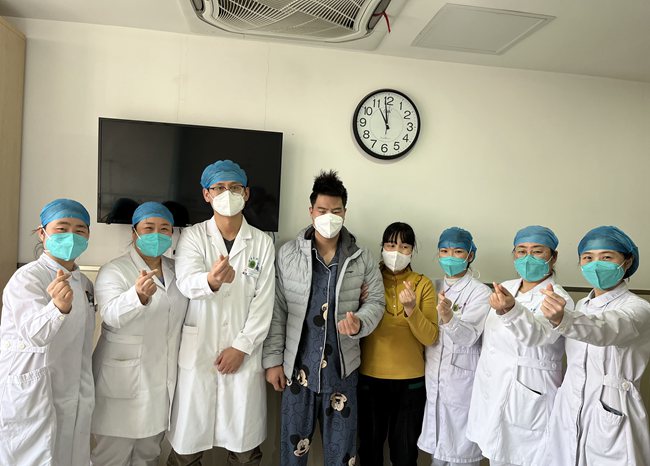 小張與醫(yī)護(hù)人員合影。陜西省第二人民醫(yī)院供圖