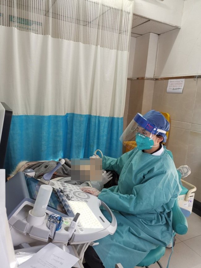 超聲醫(yī)生接診一類(lèi)地區(qū)孕婦。唐都醫(yī)院供圖