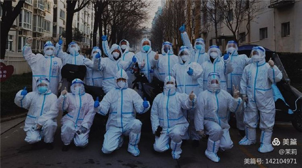 他們不是白衣天使,卻活躍在抗疫前線,他們不是病毒學(xué)家,卻想方設(shè)法抑制病毒,他們分工明確,井然有序。協(xié)醫(yī)組穿上防護(hù)服,在凜冽的寒風(fēng)中登記信息;引導(dǎo)組手持?jǐn)U音器,一遍遍組織業(yè)主有序核酸;秩序組各盡其職,助力核酸檢測高效完成;物資組提前摸排,保障獨(dú)居老人和困難家庭正常生活……連著十幾天的高強(qiáng)度工作,沒有一個黨員和志愿者退縮,他們爭先恐后、不計得失、日以繼夜的守護(hù)著我們的家園。