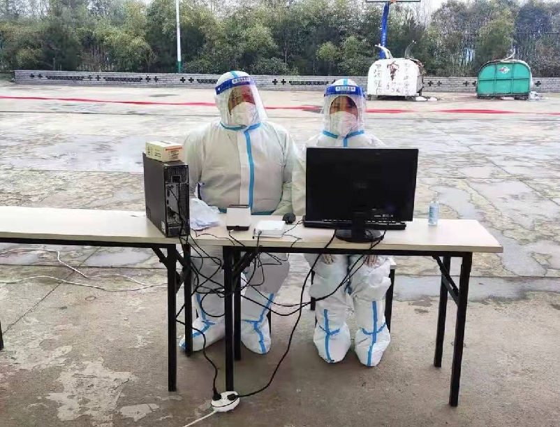 一到崗,他們夫妻二人分別被派往甘河街道侯王村采樣點和板橋頭村采樣點,成為村級采樣點的核驗員。布置采樣點的各個功能區(qū),調(diào)試信息采集設備....采集信息、核對信息、確認信息,一開始,穿防護服都需要醫(yī)護人員指導,到如今,各個環(huán)節(jié)他們都已經(jīng)“輕車熟路”。“來,下一個!”這樣的話,一天要喊幾百遍,連續(xù)參與了11輪的核酸檢測工作,他們的聲音也已經(jīng)沙啞起來。一整天下來,脫掉防護服的他們說:“能大口暢快地呼吸真好”。眉梢上的勒痕,早已成了他們所在崗位的標識。