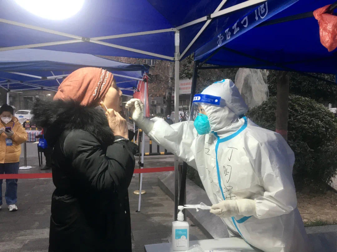 在西安市第五醫(yī)院核酸采樣者中,有這樣一名醫(yī)者,她總是笑容可掬,對待每一個前來采集的市民謙恭有禮,耐心叮囑;她的身影遍及曲江新區(qū)、蓮湖區(qū)、雁塔區(qū)、高新區(qū)、長安區(qū)等社區(qū)大街小巷,村莊院落,建筑工地,樓宇過道;每遇任務(wù),她總是率先請纓,高效有序,加班加點(diǎn),出色完成;她為日月,淡定從容,從不畏懼,心中有光,一片燦爛。她叫丁明輝,2019年北京中醫(yī)藥大學(xué)博士畢業(yè)后回到家鄉(xiāng)西安,成為五院風(fēng)濕免疫科七病區(qū)的一名醫(yī)生。她的未婚夫徐星辰博士畢業(yè)后回到長安大學(xué)工作。