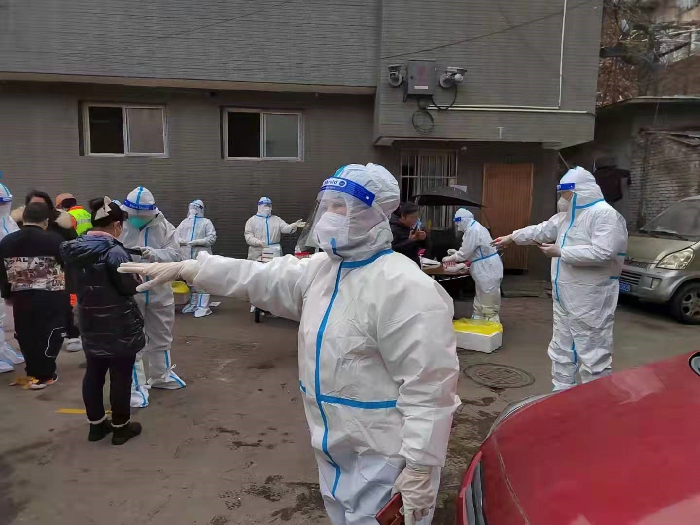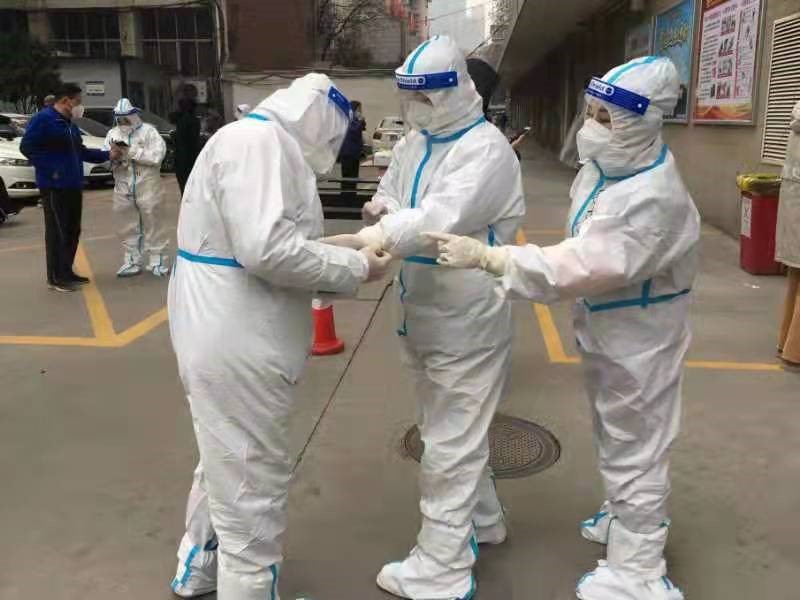 第二天一早,趙惠霞早早趕去碑林區(qū)文藝路街道文北一社區(qū)報道,開始了她志愿者生活。因為防護(hù)服一旦脫下就會報廢,采集核酸樣本的醫(yī)護(hù)人員和志愿者為了不上廁所,都不敢吃飯、不敢喝水,堅持到做完核酸才能吃飯。趙惠霞第一天下班回到家后,胃口大開,一個大暖瓶的水都喝光了。