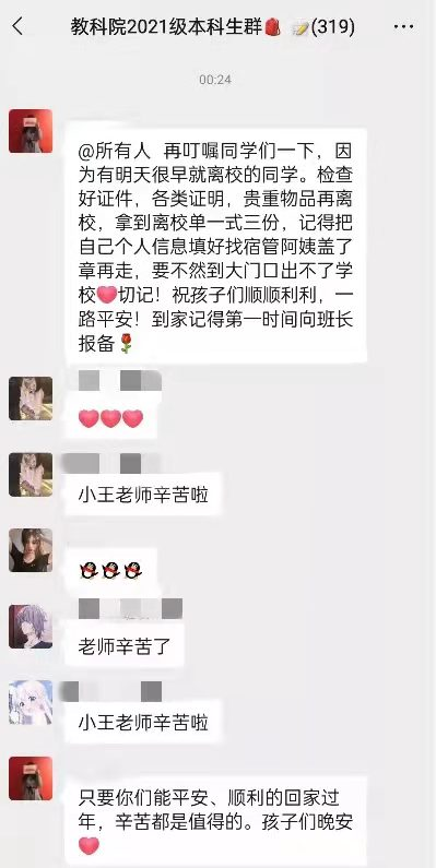 “到家第一時間給老師報個平安!”