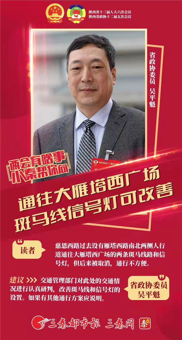 海報·建議|省政協委員吳平魁:通往大雁塔西廣場斑馬線信號燈可改善
