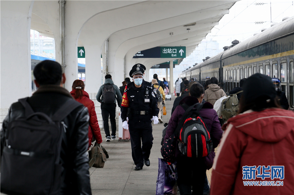 2022年1月17日列車始發(fā)前,乘警汪保山在站臺上組織旅客