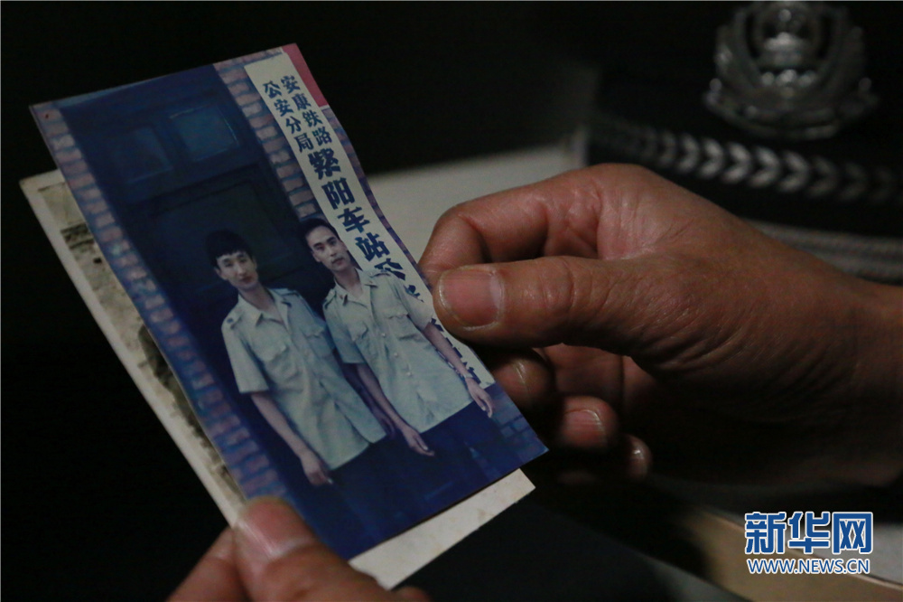 乘警汪保山從警之初在紫陽站派出所拍攝的照片,圖中右一為汪保山