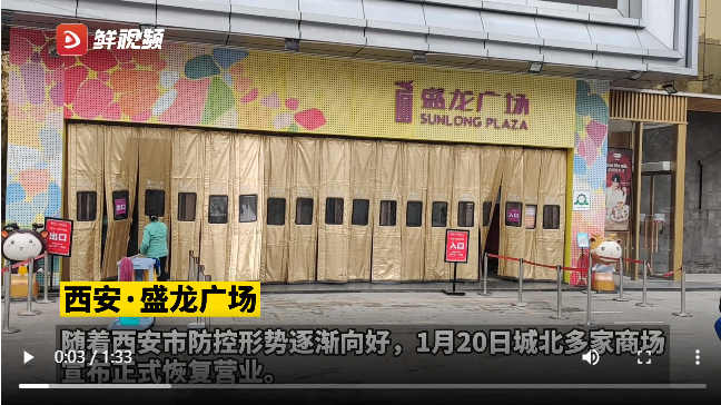 華商網(wǎng)訊(記者 何媛 鐘夢(mèng)哲)隨著西安本輪疫情形勢(shì)逐漸好轉(zhuǎn),西安市逐步降級(jí)社會(huì)面管控措施。伴隨著復(fù)工復(fù)產(chǎn)的有序推進(jìn),商貿(mào)業(yè)也做出了快速響應(yīng)——1月20日,盛龍廣場(chǎng)、龍首印象城、大明宮萬達(dá)、漢神購(gòu)物廣場(chǎng)等商業(yè)綜合體已恢復(fù)營(yíng)業(yè)。