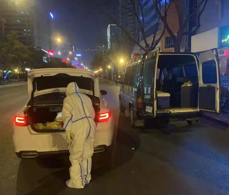 疫情之初,街道核酸檢測(cè)樣本的打包和轉(zhuǎn)運(yùn)工作任務(wù)艱巨,施煜被安排參與轉(zhuǎn)運(yùn)工作。經(jīng)過(guò)一系列嚴(yán)格的崗前培訓(xùn)后他開(kāi)始上崗。收集轉(zhuǎn)運(yùn)核酸樣本的過(guò)程中需要二級(jí)防護(hù),這期間需要吃飯喝水的話就得更換一套新的防護(hù)服,為了節(jié)省下一套防護(hù)服,施煜和他的同事們都選擇在工作中不吃不喝,兩頓飯之間經(jīng)常間隔十幾個(gè)小時(shí)。