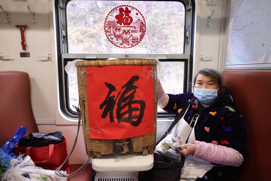 “阿姨,我也要貼窗花。”幾位穿著鮮艷衣服的小朋友高興地嚷嚷著,跑到列車(chē)員李改群跟前,共同在車(chē)窗上貼上了年味滿(mǎn)滿(mǎn)的精美窗花。“小朋友,你的新年愿望是什么?”“我要好好學(xué)習(xí),想當(dāng)班干部。”一位身穿橘色衣服的孩子回答李改群的提問(wèn)。“我的新年愿望是多多賣(mài)菜,多多賺錢(qián)。”家住燕子砭的菜農(nóng)劉大姐大聲喊道。“聽(tīng)了大家這么多的新年愿望,我的新年愿望是,希望疫情早日散去,讓更多旅客乘坐我們的慢火車(chē)去感受春日暖陽(yáng),欣賞山花爛漫!”列車(chē)員李改群說(shuō)。