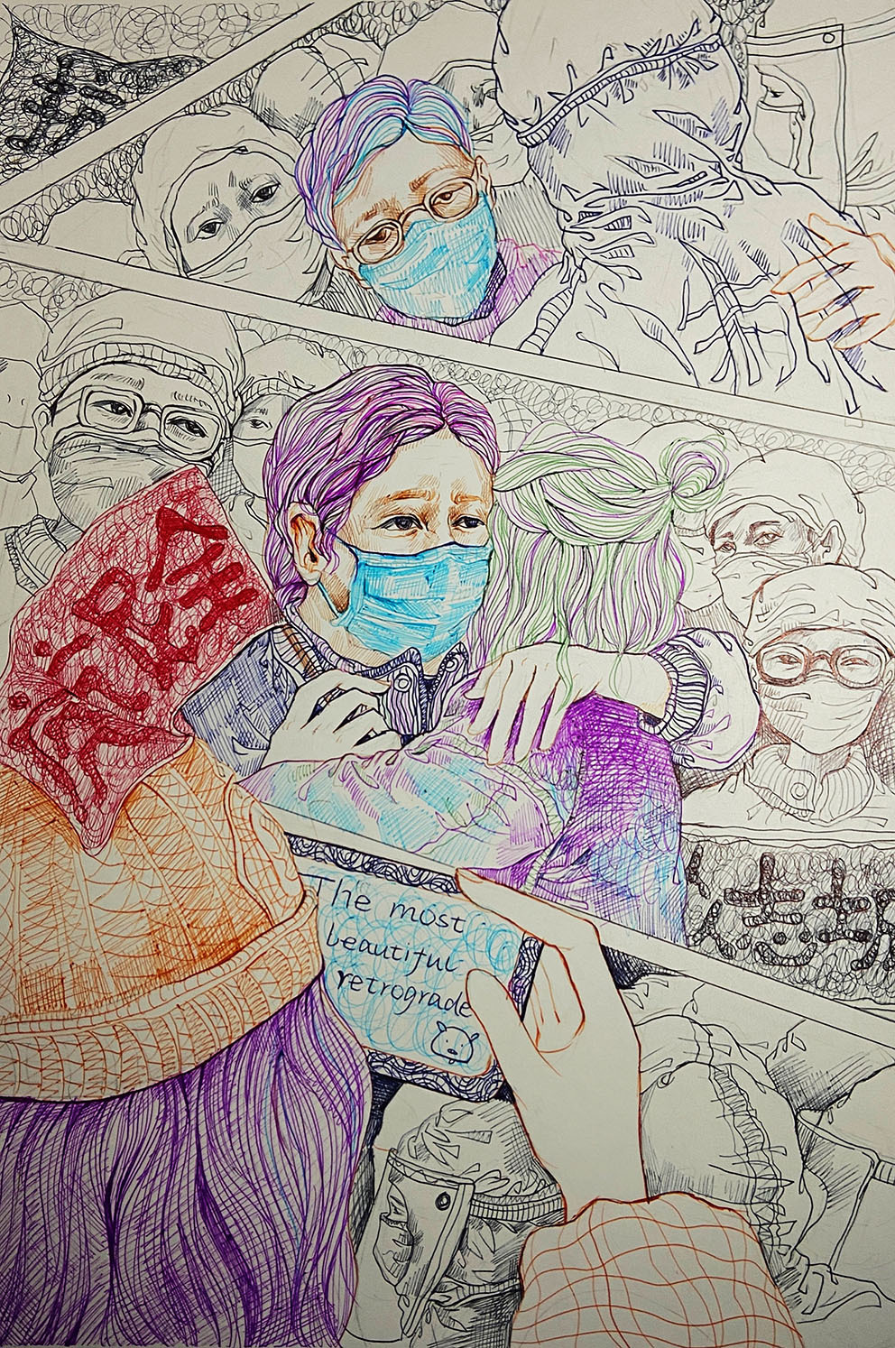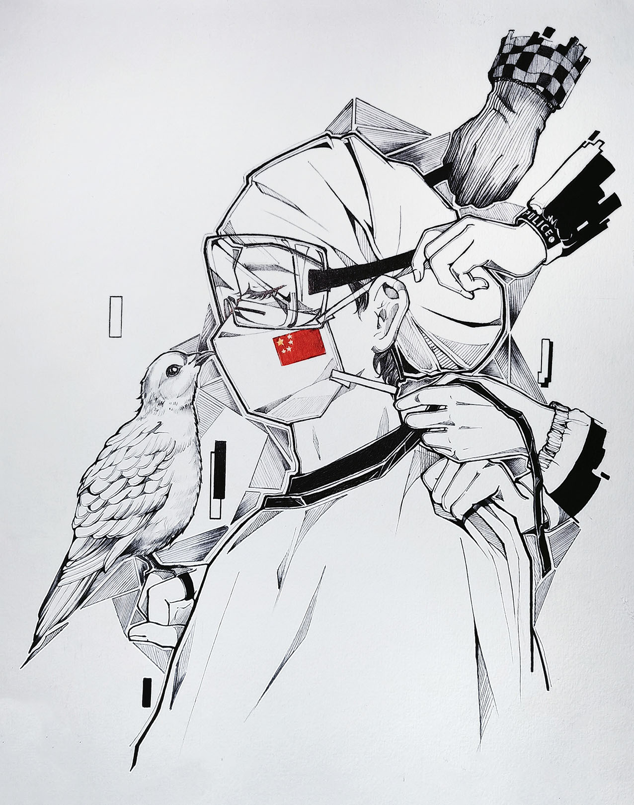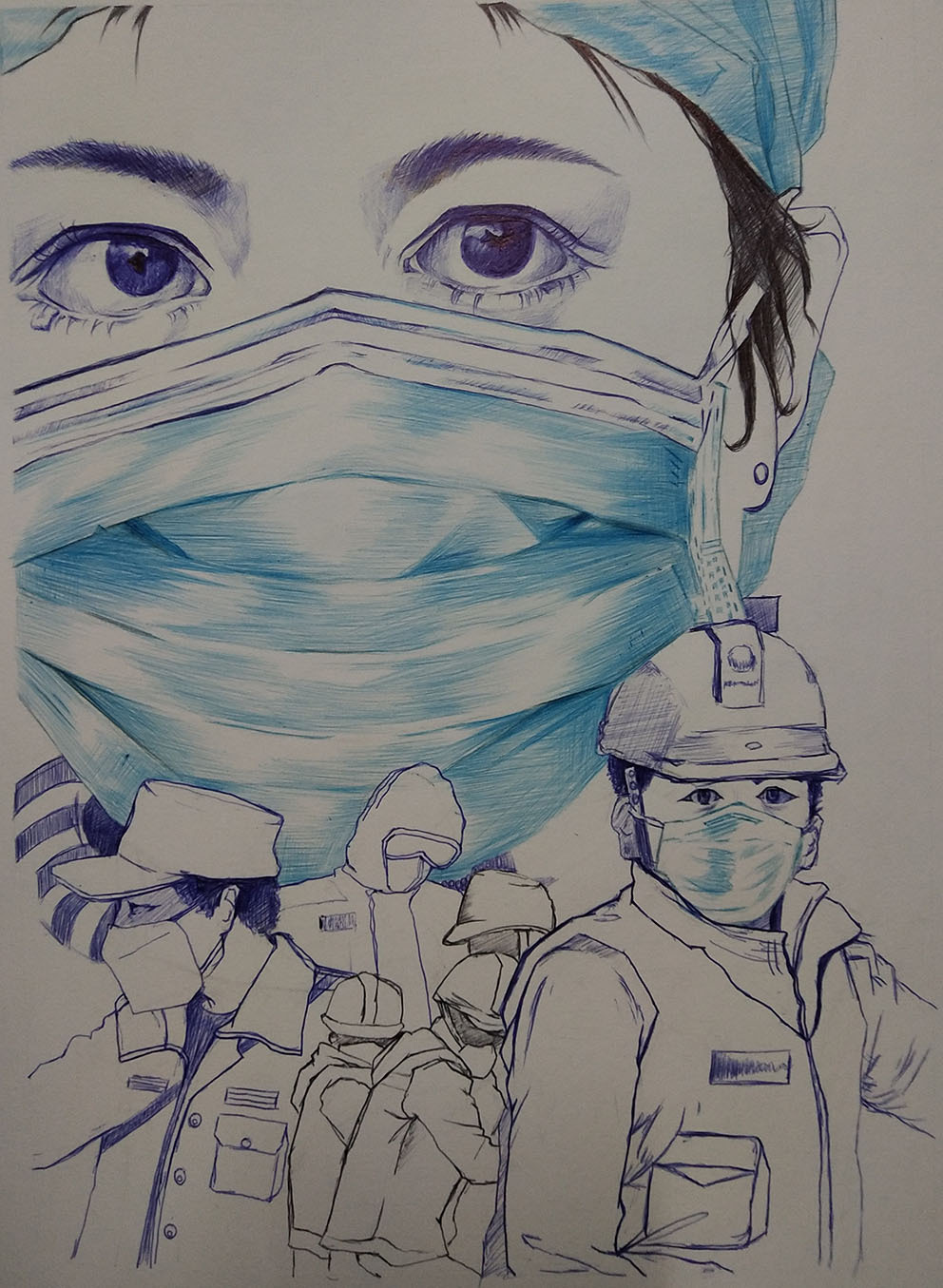 2021年12月,新冠肺炎疫情在西安突然暴發(fā),面對突如其來的疫情和嚴峻復(fù)雜的防控形勢,在加強落實疫情防控、保障師生健康的同時,西安工程大學(xué)服裝與藝術(shù)設(shè)計學(xué)院積極應(yīng)對,組織全院師生有序、規(guī)范開啟2021年秋季期末課程結(jié)課的線上教學(xué)。任課教師及時調(diào)整結(jié)課作業(yè)主題,充分利用視覺傳達設(shè)計專業(yè)特點,組織同學(xué)們嚴謹認真、激情飽滿地用畫筆以藝抗疫,致敬最美逆行者!
