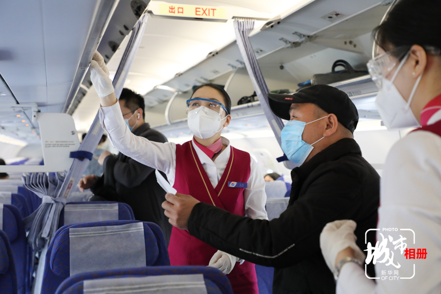 回憶新冠肺炎疫情第一年的春運,賀佳麗說,空乘需要直接接觸過往人員,最初還是很擔(dān)心,但是為了守好這道安全“關(guān)”,同事們都拼盡全力。新華網(wǎng) 耿駿宇 攝 陳雨 文