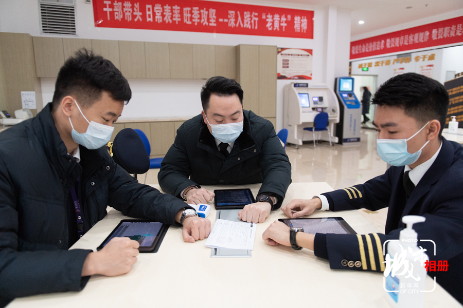 今年是劉曉周第一次參與春運。每一次出發(fā)前,劉曉周都要學(xué)習(xí)最新的個人防護知識和旅客疫情應(yīng)急處置流程,同時還要充分了解航班始發(fā)地、經(jīng)停地、目的地機場防疫要求。新華網(wǎng) 耿駿宇 攝 陳雨 文