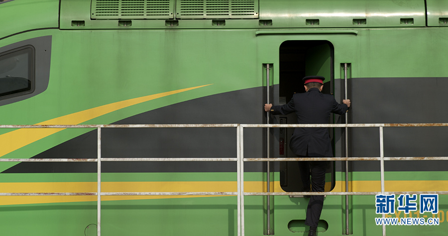 作為第一個進入中老鐵路友誼隧道的中國動車組司機,剛新婚不久的胡堅今年依然選擇在崗位上過年。(新華網(wǎng) 范芳鈺/文 劉東/攝)