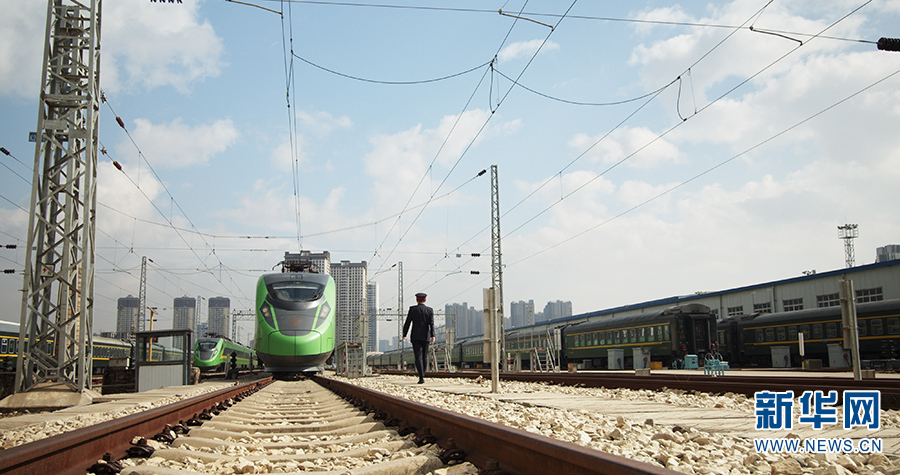 2019年8月,胡堅聽說昆明至河口即將開行“復興號”動車組列車,憑著自己多年值乘這條線路的經(jīng)驗以及嫻熟的技術水平,爭取到了駕駛新型機車的機會,如愿以償成為一名“復興號”動車組司機。由于他技術過硬,很快成為車隊中堅力量。(新華網(wǎng) 范芳鈺/文 劉東/攝)