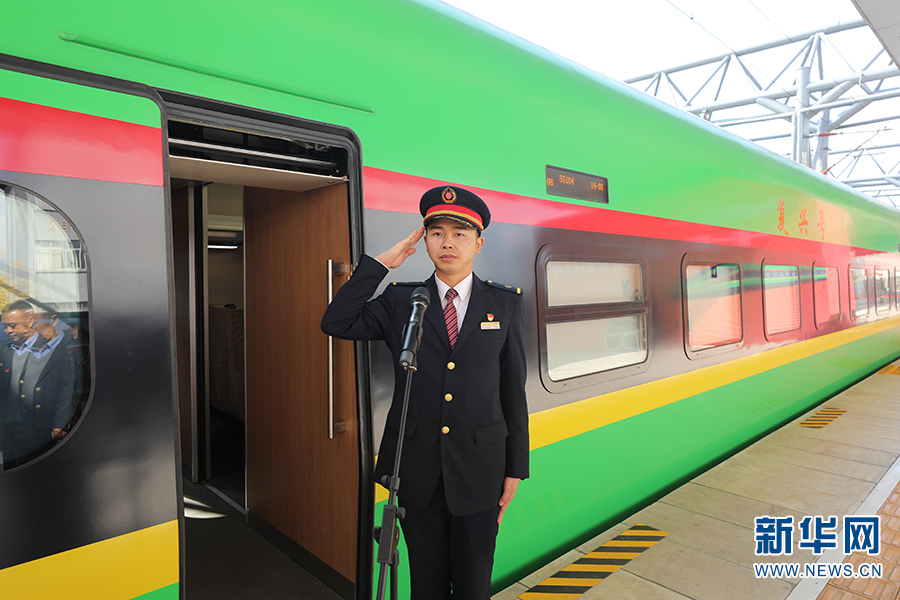 2021年12月3日,中老鐵路正式通車,開辟了中國國際鐵路運輸新紀元,那一天,胡堅站在站臺上,代表中國鐵路火車司機請示發(fā)車。(新華網(wǎng) 范芳鈺/文 昆明機務段供圖)