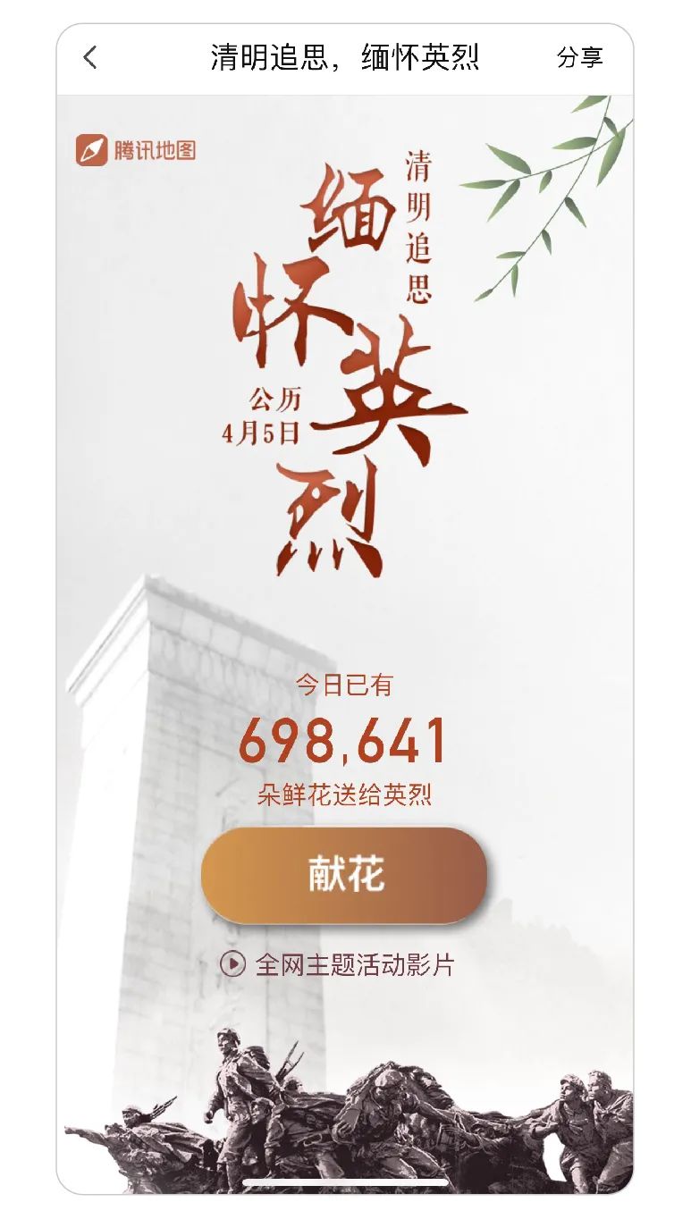 在革命英烈祭掃主題地圖頁(yè)面