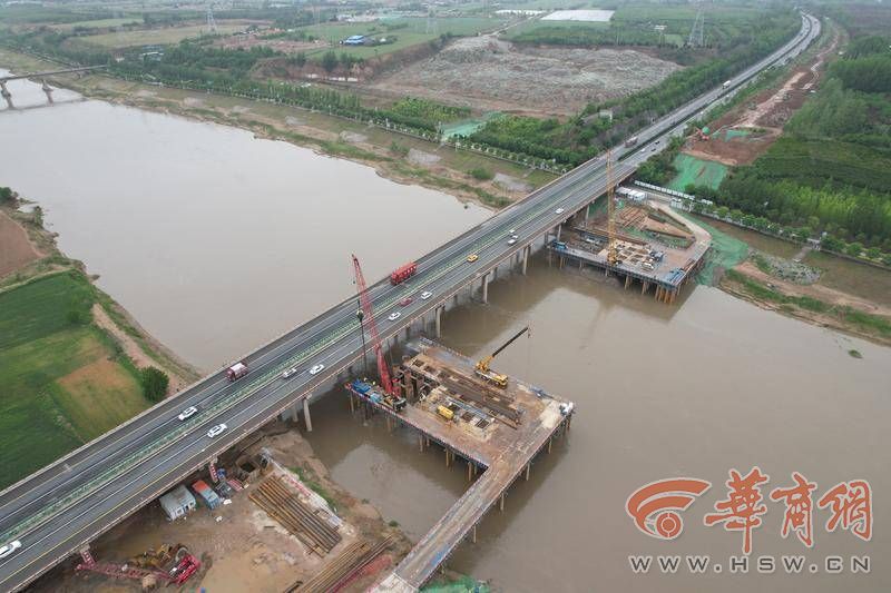 5月29日,在京昆改擴建項目六標(biāo)段港務(wù)區(qū)大橋施工現(xiàn)場,可以看到此處正準(zhǔn)備架設(shè)橋梁。一邊是繼續(xù)通行的京昆高速,一邊是繁忙的建設(shè)工地,“這里是路基改橋施工,橋?qū)牡胤降缆飞戏娇邕^去。”京昆改擴建項目六標(biāo)段常務(wù)副總工余偉介紹,目前高速公路在地方道路紡渭路下面,完成后兩條路將倒換位置。