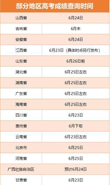目前,已經(jīng)有部分省份公布了今年高考的成績查詢時間。