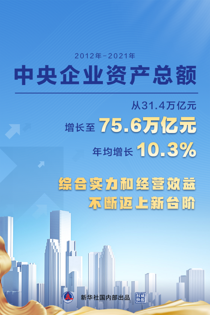 中央企業(yè)資產(chǎn)總額從2012年底的31.4萬億元增長至2021年底的75.6萬億元