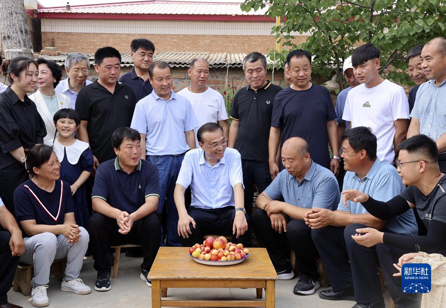 6月21日,中共中央政治局常委、國務(wù)院總理李克強(qiáng)在河北高碑店、涿州考察。這是李克強(qiáng)來到高碑店大鋪村,察看晾曬的小麥后,與村民圍坐交談。 新華社記者 劉衛(wèi)兵 攝