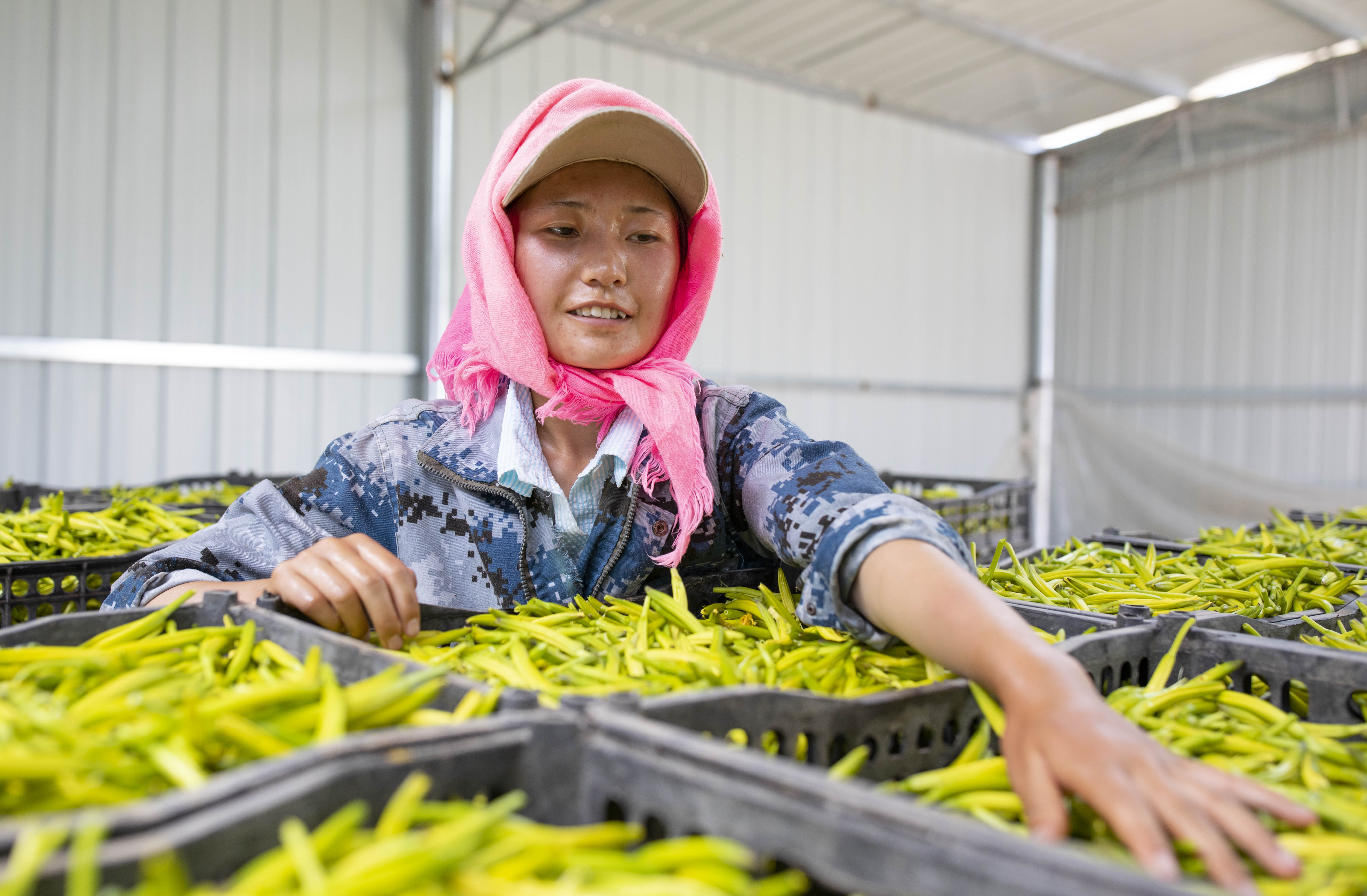 村民在寧夏吳忠市紅寺堡區(qū)柳泉鄉(xiāng)柳泉村晾曬黃花菜(2020年7月7日攝)。新華社記者 楊植森 攝