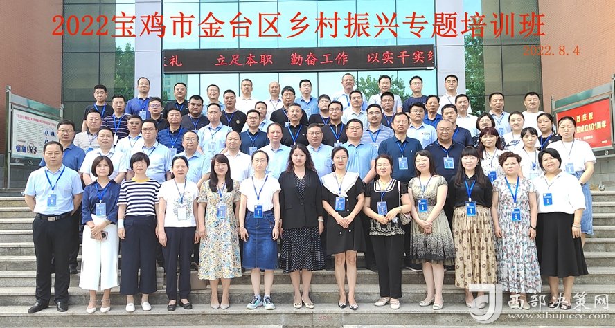 西部決策網(wǎng)訊 8月4日上午,寶雞市金臺區(qū)2022年鄉(xiāng)村振興專題培訓(xùn)班,在陜西鄉(xiāng)村振興研究中心(寶雞文理學(xué)院)正式開班啦!陜西鄉(xiāng)村振興研究中心主任、寶雞文理學(xué)院經(jīng)濟(jì)管理學(xué)院院長劉輝;寶雞市金臺區(qū)委副書記黃同治;金臺區(qū)委常委、組織部部長張煒;金臺區(qū)鄉(xiāng)村振興局局長鄭偉平出席會議。金臺區(qū)各鎮(zhèn)、涉農(nóng)街道黨(工)委書記、和鄉(xiāng)村振興工作分管領(lǐng)導(dǎo)、區(qū)委實(shí)施鄉(xiāng)村振興戰(zhàn)略領(lǐng)導(dǎo)小組和區(qū)委抓黨建促鄉(xiāng)村振興工作領(lǐng)導(dǎo)小組分管領(lǐng)導(dǎo)等60多人參加了培訓(xùn)班。開班儀式由金臺區(qū)委副書記黃同治主持。